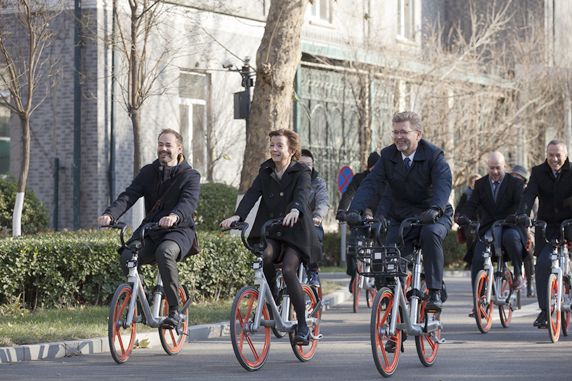 On the morning of 5 December, starting from the Chinese People’s Association for Friendship with Foreign Countries(CPAFFC), Danish Minister for Gender Equality and Nordic Cooperation Karen Ellemann Kloch, who visited China to attend the China Denmark Regions and Cities Forum at the invitation of the CPAFFC, together with the Danish regional and municipal leaders and the Danish Ambassador to China Carsten Damsgaard, visited Beijing’s scenes by biking. She hoped to raise people’s awareness of environmental protection and low carbon transportation by ways that the Danish people like and advocate.