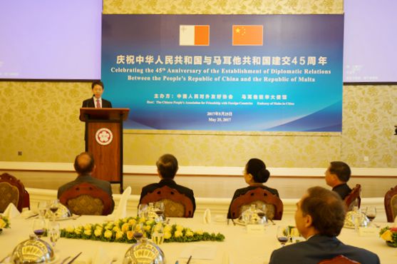 Vice President Hu Sishe said in his speech that the past 45 years has witnessed steady development of China-Malta relations with fruitful cooperation in all fields. Exchanges and cooperation between the two countries in all sectors has not only enhanced mutual understanding and friendship between their people, but also enriched exchanges and mutual learning between eastern and western civilizations. The CPAFFC is willing to take the 45th anniversary of China-Malta diplomatic ties as an opportunity to work with Malta, on the basis of mutual respect, equality and mutual benefit, further strengthen practical cooperation in all fields, and promote the bilateral relations to a new height.