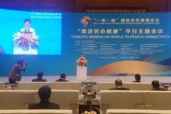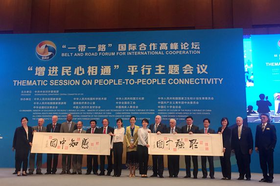 On May 14th, Mme. Li Xiaolin, President of the Chinese People’s Association for Friendship with Foreign Countries (CPAFFC), Mme. Lin Yi, Vice President of CPAFFC, Mr. Song Jingwu, Vice President of CPAFFC, jointly attended the opening ceremony, high level meeting and thematic session on people-to-people connectivity of the Belt and Road Forum for International Cooperation (BRF) in Beijing International Convention Center.