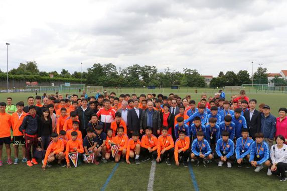 Jointly organized by the Chinese People’s Association for Friendship with Foreign Countries (CPAFFC) and German-Chinese Friendship Association in Mannheim/Rhein-Neckar, Germany, the Fifth Chinese-German U-16 Football Friendship Tournament was successfully held in Mannheim and Worms, Germany from 1. July to 2. July 2017. Leading by vice resident of CPAFFC Mr. Song Jingwu ,the Chinese delegation attended the Tournament. Four Chinese teams including Muslim Middle School Shenyang, Second Middle School Xiamen, FC Yanbian Fude and Qingdao Huangdao District and six German teams including FC Walderhof Mannheim, FC Womatia Worms, FA Baden select and Bergstrasse Select, etc. competed in the field.