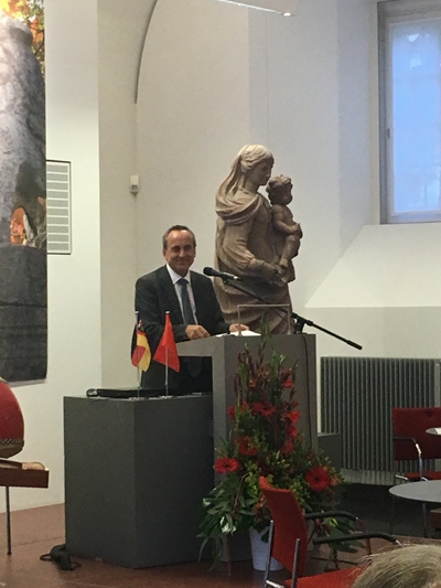 In commemoration of the 45th anniversary of establishment of formal diplomatic relations between China and Germany, CPAFFC together with Xi’an People’s government, German Generaldirektion Kulturelles Erbe Rheinland-Pfalz, Wiesbaden-Mainz Germany-China Friendship Association co-hosted the First Session of Dialogue between Chinese and German Historical Cities on Sep.12th and 13th in Mainz, Germany. Mr. Hu Sishe,Vice president of CPAFFC and Mr. Wang Yongkang, Member of the Standing Committee of Shaanxi CPC Central Committee and Party Secretary of Xi’an attended relevant activities. Besides them, many other influential politicians attended the activities, e.g. Mr. Roger Lewentz, the Minister of the Interior and also Chairman of the SPD in Rhineland-Pfalz State; Prof. Dr. Konrad Wolf, State Minister of Culture and Education; Mr. Thomas Metz, Director-General of Generaldirektion Kulturelles Erbe Rheinland-Pfalz; Mr. Michael Ebling, Major Mayor of Mainz; Mr. Kurt Karst, President of Federation of German-China Friendship Association and Mr. Wang Shunqing, Consul General of Chinese Consulate General in Frankfurt. Mr. Hu Sishe, Mr. Wang Yongkang and Minister Prof. Dr. Konrad Wolf delivered speeches on the opening ceremonies of the Dialogue as well as the Exhibition of Replicas of Xi’an Archaeological and Cultural Relics. Reporters from more than 10 German media attended and reported the press conference which was presided by Mr. Hu Sishe and Secretary of State Ministry of Culture.