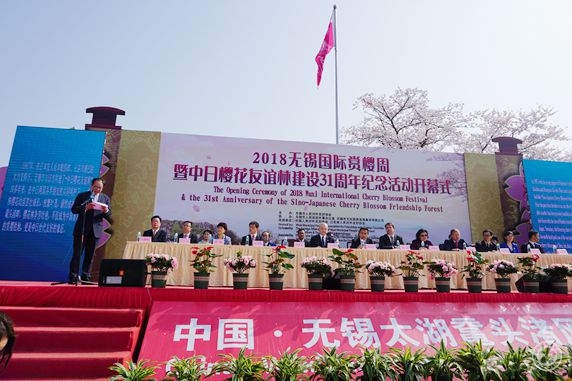 Vice President Song Jingwu attended and addressed the opening ceremony of 2018 Wuxi International Cherry Blossom Week and the Commemoration of the 31st Anniversary of the China-Japan Cherry Blossom Friendship Forest in Wuxi on March 28, 2018.