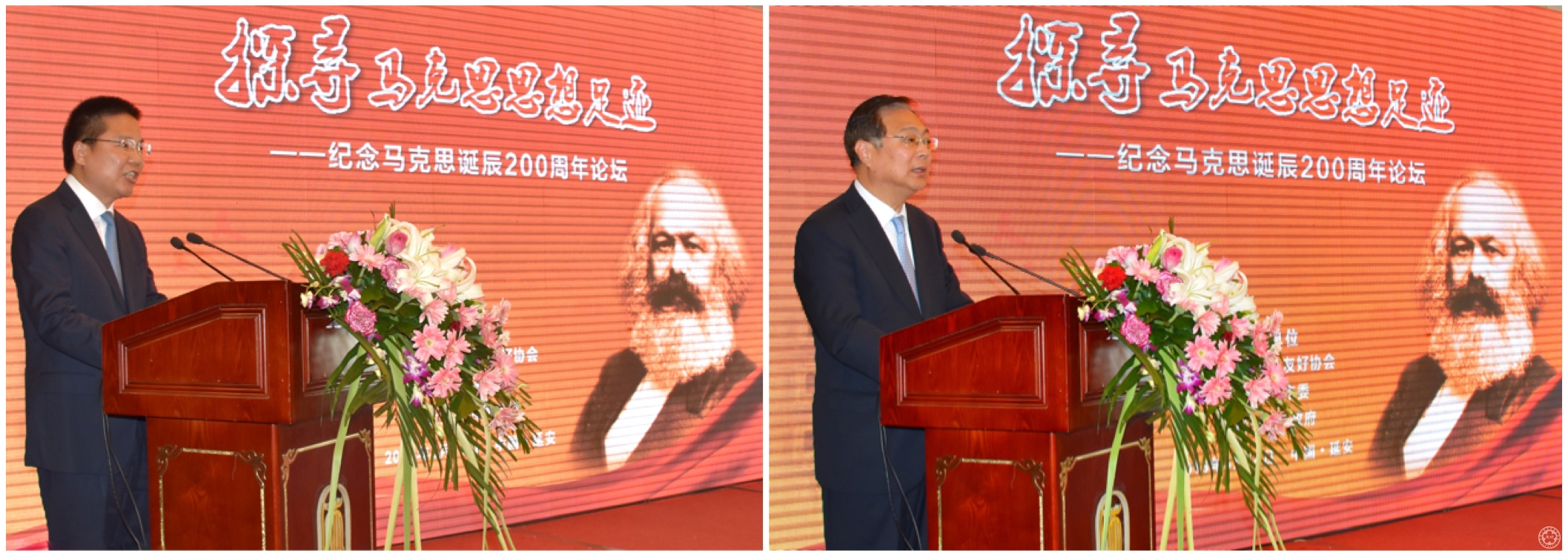 Deputy secretary Yan Hanping stated that Yan'an is an important place for the localization of Marxism. The three great leaps taken place in China were all related to Yan'an. In the future, Yan'an will continue to develop with the Yan'an spirit. Party secretary Zhang Maizeng pointed out Marx is a thoughtful, innovative and diligent figure. His thoughts are people-centered and practice-oriented. It is of profound historical and practical significance to explore why China had chosen Marxism. Vice president Xie Yuan spoke highly of the signing of the memorandum between Yan'an and Trier to establish a friendship-city relation. He recommended Yan'an to invite the mayor of Trier to visit Yan'an as soon as possible and promote practical cooperation between the two cities, especially strengthen exchanges and interactions among the youth.