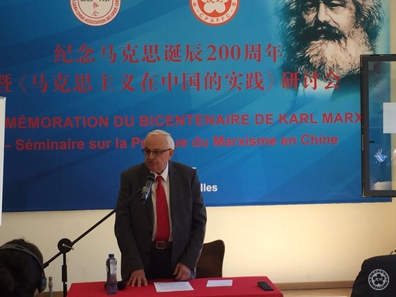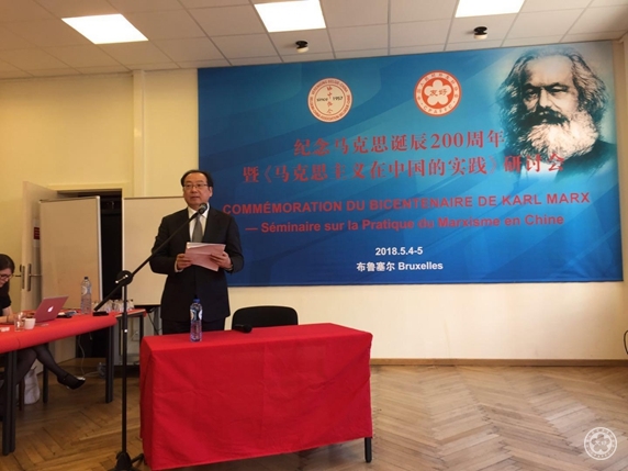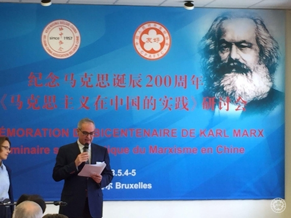 The Seminar on The Practice of Marxism in China , and the activities to commemorate the 200th anniversary of Marx’s birth, which were co-hosted by the Chinese People’s Association for Friendship with Foreign countries (CPAFFC) and Belgium-China Friendship Association (BCFA), were held successfully in Brussels, capital of Belgium, on the morning of May, 5th. Over 100 personages including the experts and the scholars from Belgium, France, Swiss and China, attended the seminar. Mr. Song Jingwu, Vice President of CPAFFC, Mr. Hans VAN DUYSEN, Chairman of BCFA, Mr. Zhang Chi, Minister Counsellor of the Chinese Embassy in Belgium, attended the seminar and delivered speeches respectively.