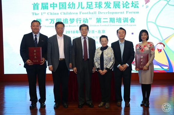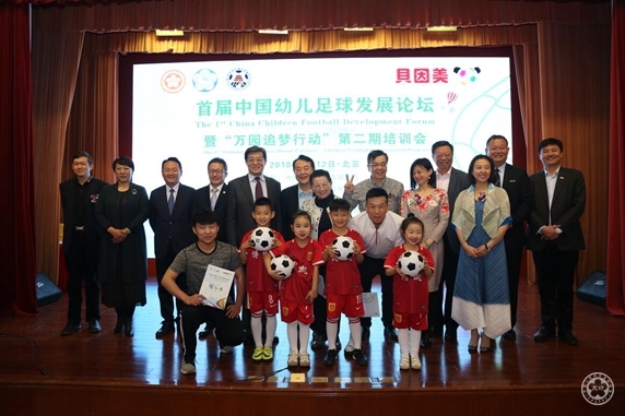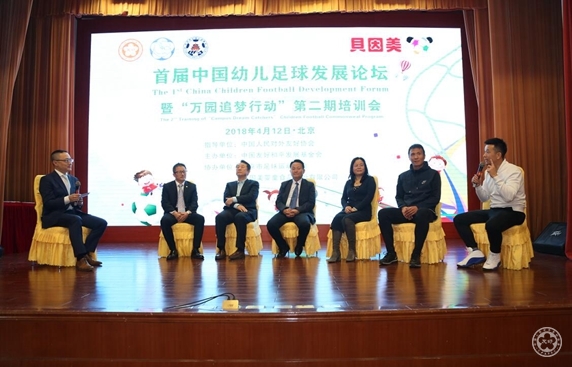 The 1st China Children Football Development Forum and the 2nd Training of Campus Dream Catchers, hosted by China Friendship Foundation for Peace and Development (CFFPD), was held on April 12, 2018. The program was under the guidance of the CPAFFC and co-organized by Beijing Football Association and Beingmate Baby & Child Food Co., Ltd.