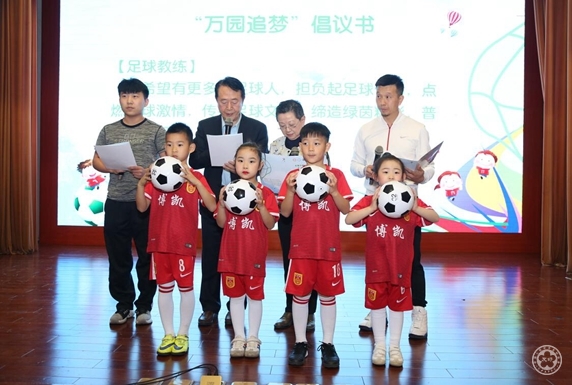 Jin Zhiyang, Director of National Campus Football Expert Committee, former coach of Chinese football national team, Consultant and Director of Technical Committee of Beijing Football Association, and Professor Wan Xuanrong, led the representatives of teachers, parents and children to read the Proposal of Campus Dream Catchers, proposing the idea of “Chinese football starting from me and let children grow up with football”.