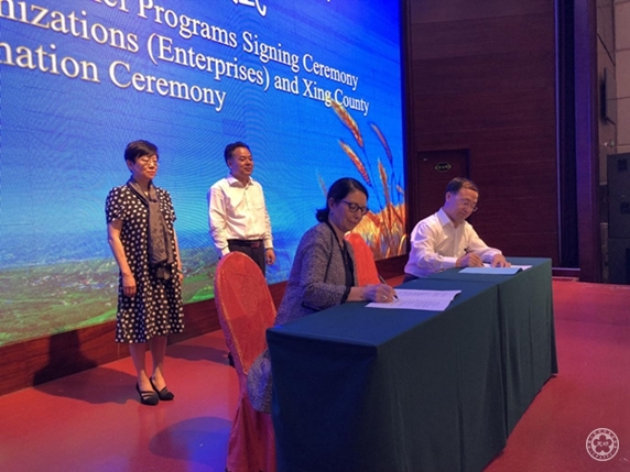 On the morning of June, 27th, Mme. AICHA MOKDAHI, Chairperson of France Foundation Vision Essilor (FFVE) and Mr. Liu Shiqing,County Mayor of Xing County, Shanxi Province, signed a cooperative agreement on China (Xing County) International Symposium on Poverty Relief co-hosted by the Chinese People’s Association for Friendship with Foreign Countries (CPAFFC) and People’s Government of Shanxi Province. According to the agreement, FFVE will donate an optometry center to Xing County People’s Hospital, so as to assistant Xing County to do well in poverty alleviation. CPAFFC President Li Xiaolin and Vice Governor of Shanxi Province Chen Yongqi were witnesses to the signing ceremony.