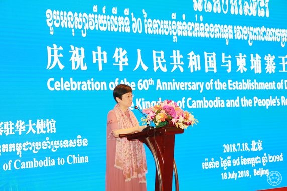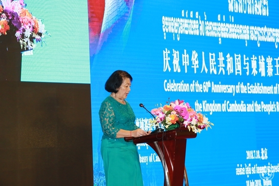 Mme. Khek M Caimealy noted that the last 60 years have witnessed the unceasing growth of China and Cambodia’s friendship. The two nations have full-heartedly supported and cooperated with one another in each’s process of defending state sovereignty and territorial integrity. In recent years, various stratum of the two nations frequently exchanged visits; collaborations in skills including agriculture, energy, telecommunication, transportation, infrastructure, information and communication rapidly developed; exchanges of culture and tourism remained vibrant; and the two’s bilateral strategic partnership continued to proceed forward. Mme. Caimealy voiced that Cambodia thanks China’s contribution in protecting regional and global peace, stability, and safety. Cambodia also strongly supports initiatives proposed by China including “One Belt One Road”, Silk Road Fund, and AIIB. Furthermore, Cambodia wishes to continue the long standing cooperative and friendly neighboring ties, and deepen the two nations’ bilateral strategic partnership.