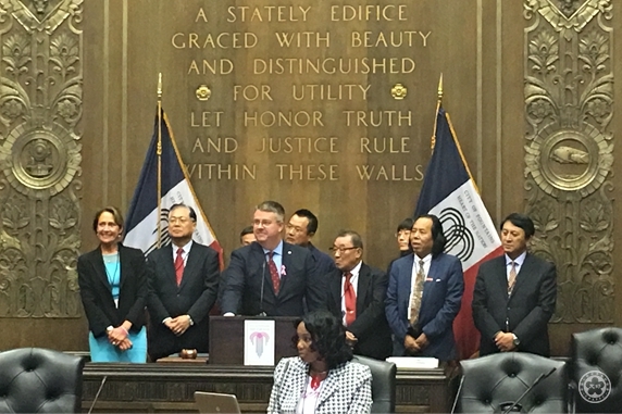 During the symposium, Director General Zhang Heqiang attended panel discussion Global Economic Development and Cultural Exchange. The CPAFFC delegation also witnessed the passing of a Resolution by Kansas City Council recognizing its Sister Cities relations with Yan’an and Xi’an and visited the Edgar Snow Reading Room in Miller-Nichols Library in UMKC.