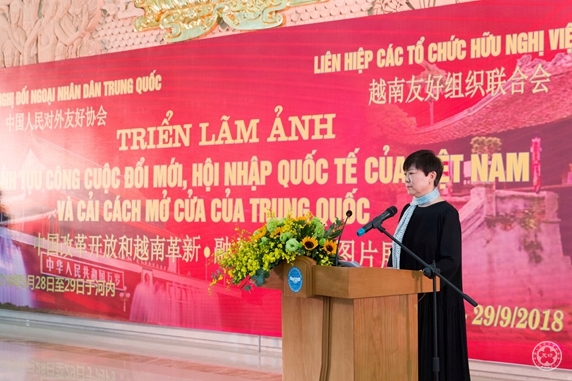 On September 28th, Zhao Leji, a member of the Standing Committee of the Political Bureau of the Communist Party of China (CPC) Central Committee and secretary of the Central Commission for Discipline Inspection of the CPC, together with his delegation and Pham Minh Chinh, a member of the Politburo of the Communist Party of Vietnam (CPV) , secretary of the CPV Central Committee and head of the CPV Central Committee Organization Commission, attended the opening ceremony of the Photo Exhibition on China’s reform and opening up and Vietnam’s reform and innovation drive. The Exhibition was sponsored by the CPAFFC and the Vietnam union of Friendship Organizations (VUFO) at the Vietnam-China Friendship Palace in Hanoi. CPAFFC President Li Xiaolin and VUFO Executive Vice Chairman Don Tuan Phong accompanied Zhao Leji and Pham Minh Chinh at the Exhibition.