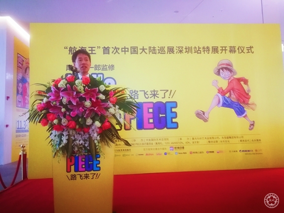 The opening ceremony of the first touring exhibition in China mainland One Piece, the world-class animation work, was held in Sea World Culture and Arts Center in Shenzhen on Novermber 2. Leaders and guests, including Mr. Hu Sishe, Vice President of the Chinese People’s Association for Friendship with Foreign Countries (CPAFFC),Mr. ONO SINNYA, former Vice Minister of Ministry of Education, Culture, Sports, Science and Technology (MEXT), Mr. Liuwei, Deputy Director-General of China Merchants Shekou Industrial Zone Holdings Co., Ltd., Mr. Jiang Hong, Secretary General of ShenZhen Overseas Exchanges Association, Mr. Chen Jianzhong, Chairman of the Board of KOUZAN Fine-arts Company, Mr. HIRONO SHINICHI, Managing Director of Shueisha Inc., Mr. Wang Zhiyuan, Chairman of the Board of YONGHENGSHENG Group, Mr. YAMADA KIICHIROU, Director of TOEI ANIMATION CO., LTD., Mr. Wang Hao, General Manager of Chongqing Dongling Art Co., Ltd., attended the opening ceremony.
