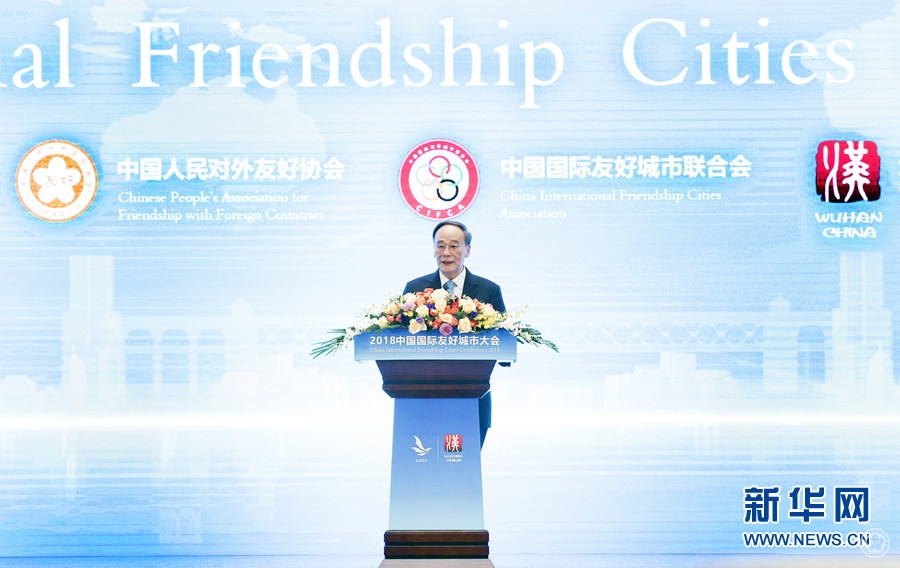 The 2018 China International Friendship Cities Conference was held in Wuhan on November the 15th. Chinese Vice President Wang Qishan attended the opening ceremony and delivered a keynote speech.