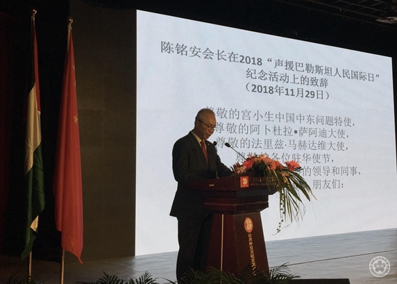In cooperation with the Embassy of Palestine in Beijing, the Chinese People’s Association for Friendship with Foreign Countries held the event to mark the International Day of Solidarity with the Palestinian People as well as the 30th anniversary of establishment of China-Palestine diplomatic relations in Beijing on 29th November 2018. H.E. Mr. Gong Xiaosheng, China’s Special Envoy on the Middle East Issue, H.E. Mr. Abdullah Al-Saadi, dean of the diplomatic corps of Arab countries in China and Ambassador of Oman , H.E. Mr. Mahmud Elamin, head of the mission, league of the Arab states, H.E. Mr. Fariz Mehdawi, Ambassador of Palestine as well as over 200 guests attended the event.