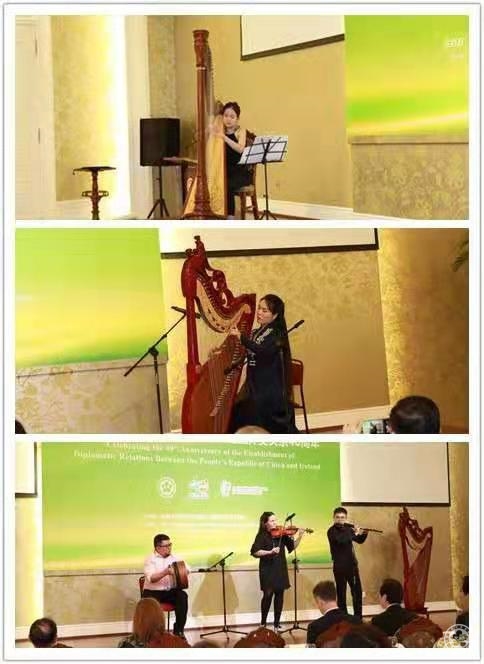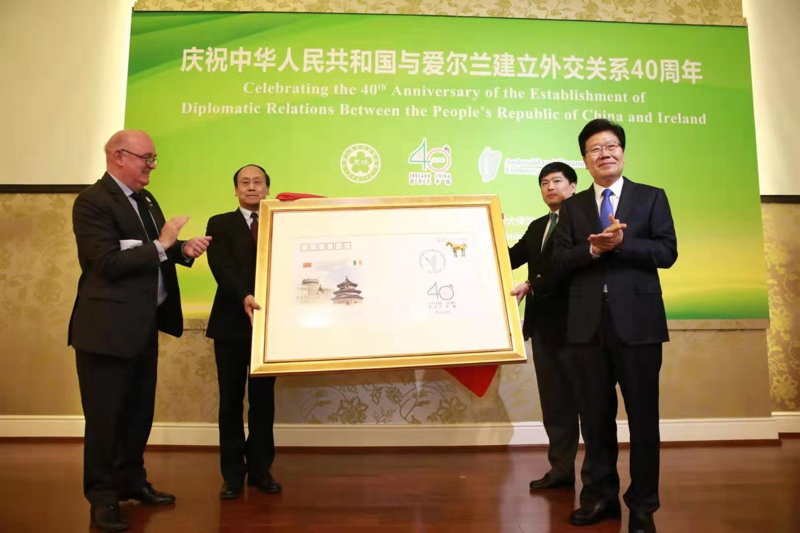 At the reception, Vice Chairman Zhang Chunxian and Ambassador Eoin O’Leary jointly unveiled the commemorative envelop for the 40th anniversary. Vice Minister Wang Chao and Ambassador Eoin O’Leary exchanged celebratory gifts. Artists from China and Ireland presented guests with harps, Konghou and Irish traditional folk music performances.