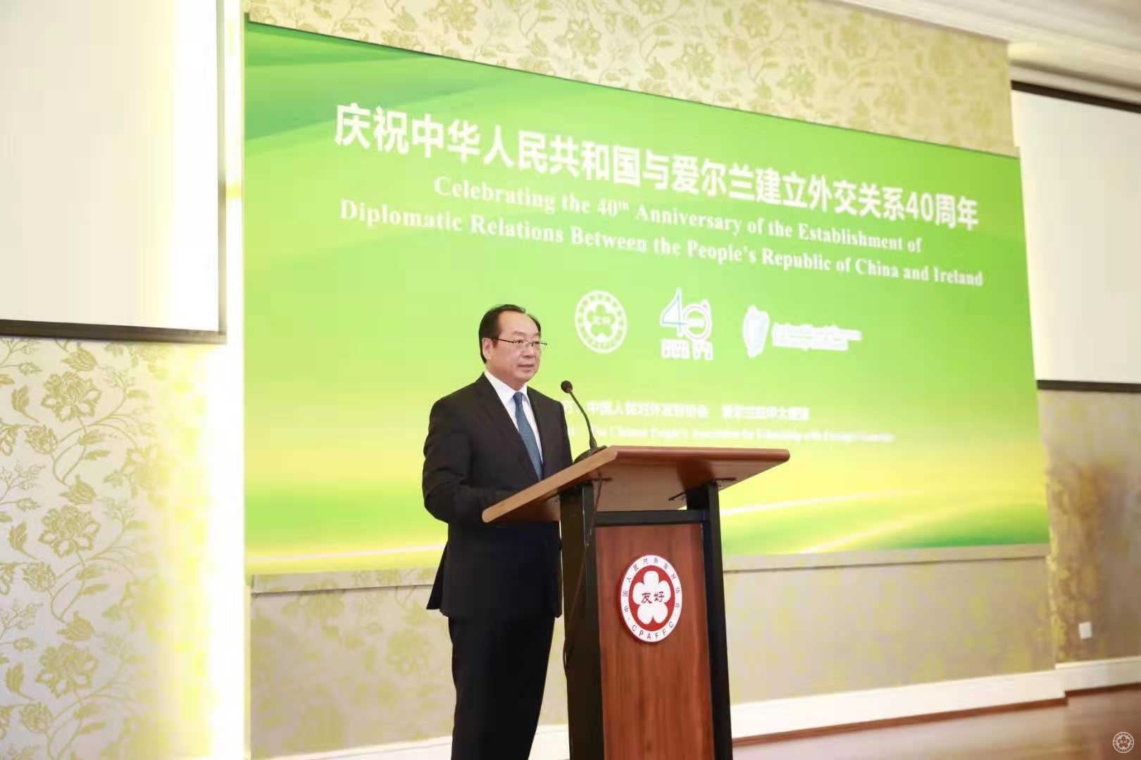 Vice President Song Jingwu said in his speech that in past 40 years, the two sides have always trusted, respected and helped each other, and China-Ireland relations have become a model of friendship between countries regardless of their differences in social systems, historical backgrounds and geographic sizes. We would like to join hands and work together with Ireland, to deepen our friendship and cooperation, develop our Strategic Partnership for Mutually Beneficial Cooperation, and make concerted efforts to build a world of lasting peace, stability, security and common prosperity.