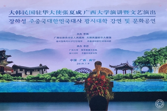 Delegation attended the lecture of H.E. Jang Ha-Sung (Korean ambassador to China) at Guangxi University