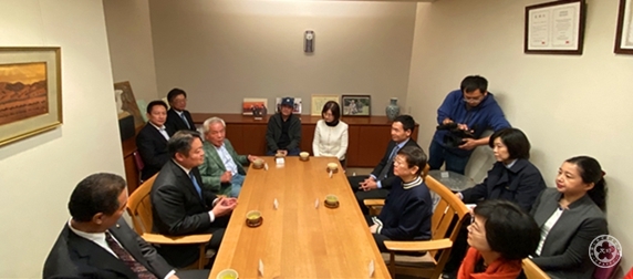 2019年11月16日,李小林会长一行访问日本山梨县平山郁夫丝绸之路美术馆,与山梨县知事长崎幸太郎、日本前文化厅长官青柳正规、平山郁夫丝绸之路美术馆馆长平山东子等进行了座谈。