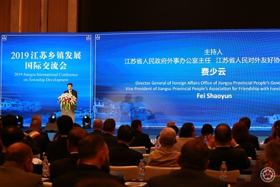 11月7日,由江苏省人民对外友好协会主办的2019江苏乡镇发展国际交流会在苏州吴江举办。江苏省委常委、苏州市委书记蓝绍敏,江苏省人民对外友好协会会长柏苏宁出席开幕式并致辞,澳大利亚维多利亚州前议长肯·史密斯、日本国际协力中心理事长山野幸子作为外宾代表致辞,江苏省人民政府外事办公室主任费少云主持开幕式,江苏省发改委副主任汤明海、江苏省农业农村厅副厅长蔡恒作大会发言。来自澳大利亚、丹麦、法国等10个国家近80位外宾,江苏25个乡镇、11个特色小镇等近300人参加本次交流会。
