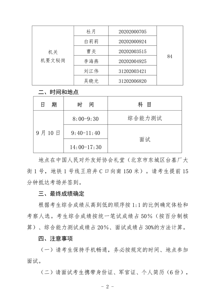 中国人民对外友好协会2020年接收军队转业干部面试公告