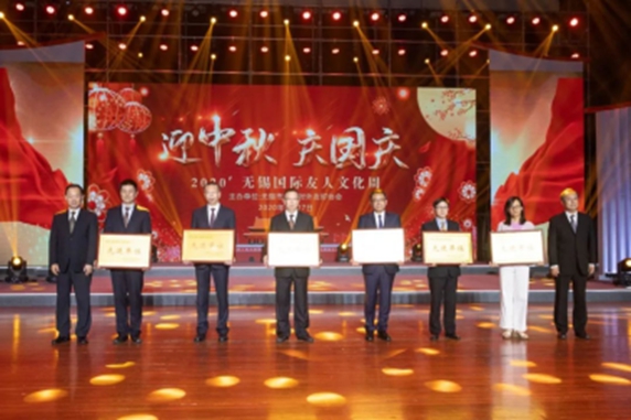 演出前的表彰仪式上,市领导为“无锡市人民友好使者”代表和“双推”工作先进集体颁奖,表彰他们对促进中外交流所作出的贡献。