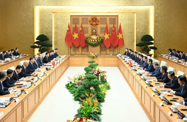 习近平指出,当前,中越关系持续向好发展。昨天,我同阮富仲总书记一道见证双方签署数十份合作文件,涵盖了两党两国合作的方方面面,充分说明中越关系的广度和深度。中越两国理想信念相同,前途命运与共。我同阮富仲总书记一道宣布构建具有战略意义的中越命运共同体,开启了新时代中越关系新篇章,相信将为两国人民带来更大福祉,为地区和世界和平、稳定、发展作出积极贡献。