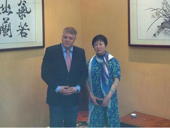 德明副总经理感谢李会长拨冗会见。他介绍说,乌拉尔车厢厂是俄最大国有企业之一,其总经理西延科与俄社会各界联系紧密。他表示此次来访即是专程来与我会商谈推动中俄地方领导人会晤事宜,并当面转交西延科总经理致李会长的信函。